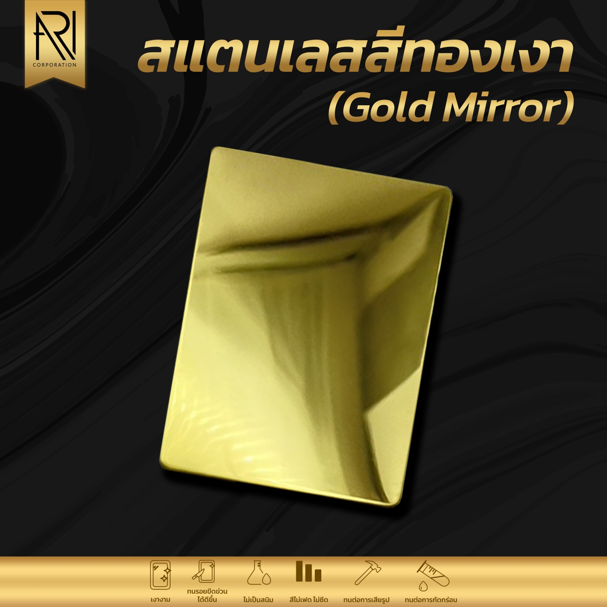 - สแตนเลสสีทอง จะมีสีออกเหลืองทองที่เข้มกว่า ออกเป็นสีทองจริงๆ มีความหรูหรา สวยงาม ดูมีมูลค่า เหมาะกับงานตกแต่งที่หรูหรา เพิ่มความสวยงามอลังการ